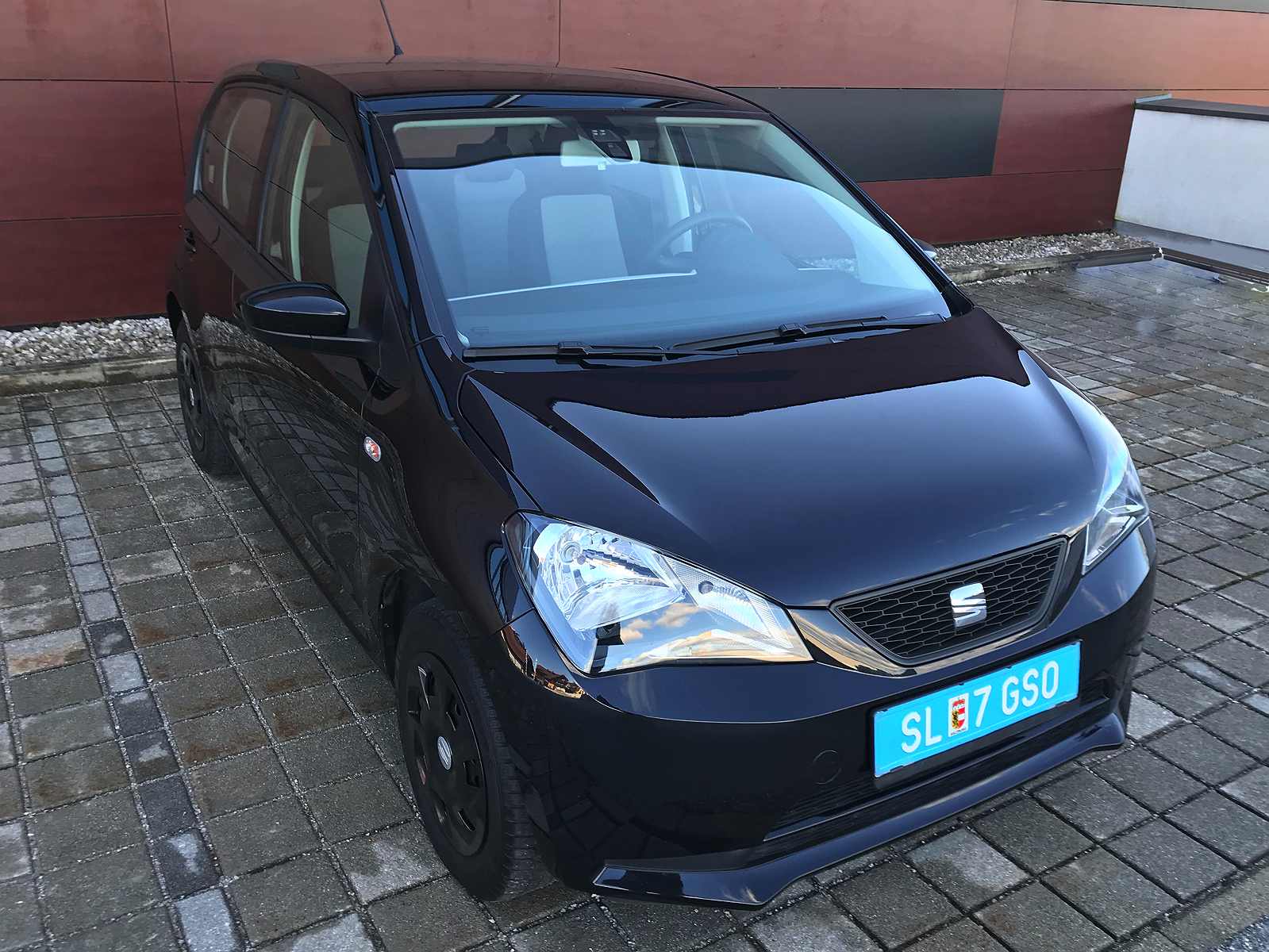 Sehr gepflegter, sparsamer Seat Mii 5-Türer aus Erstbesitz, schwarz-metallic, Baujahr 1/2014, mit nur 62.500 km. Inklusive aktuellem ARBÖ-Prüfgutachten.